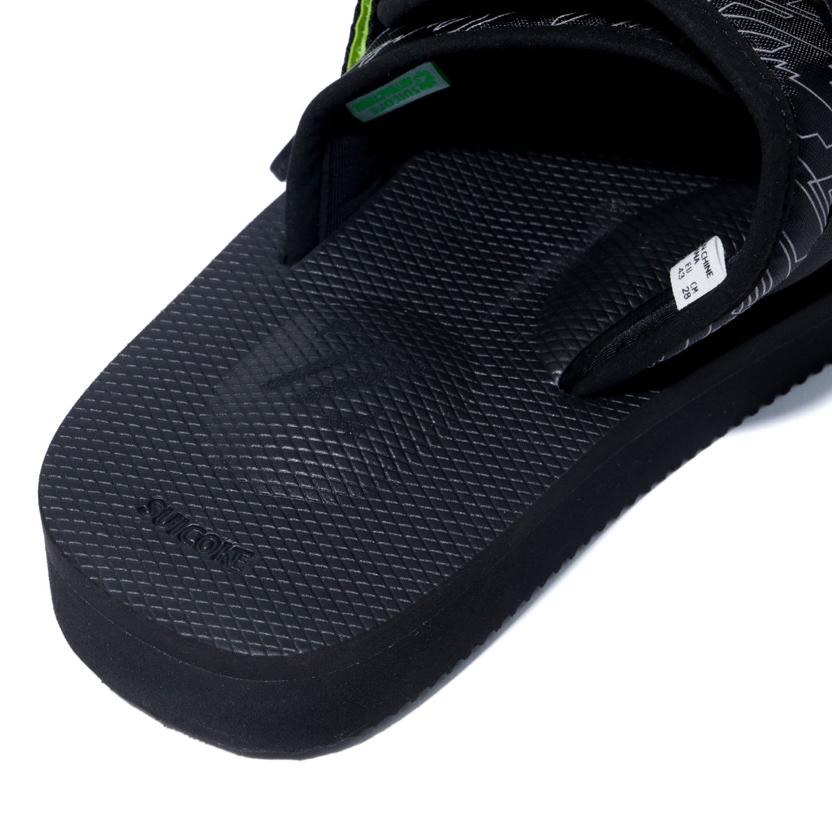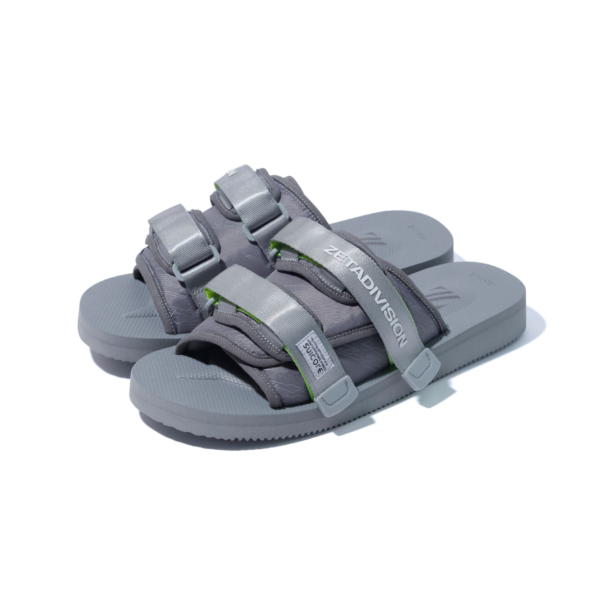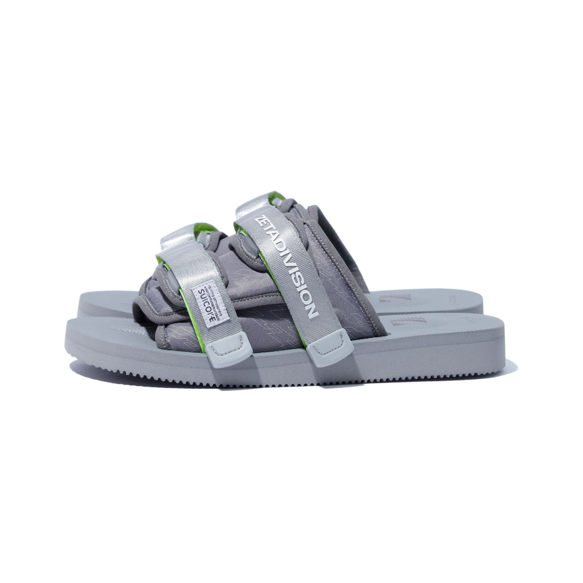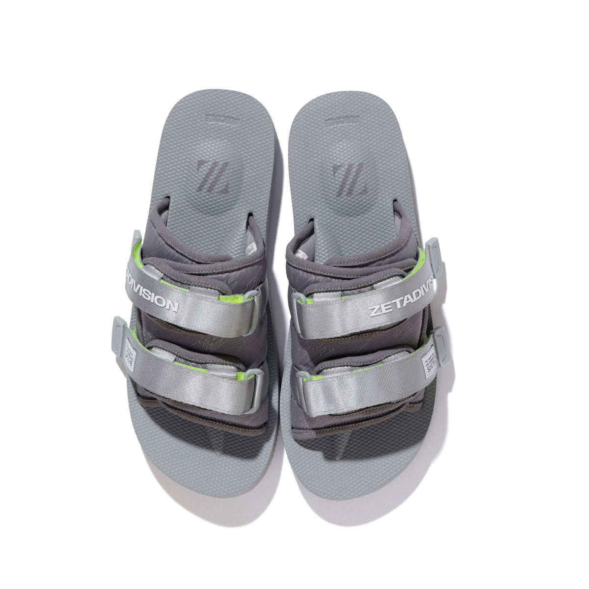 The collection centers around the iconic SUICOKE "MOTO" sandal and showcases a camo pattern design with vibrant neon yellow, which represent the unique color palette of ZETA DIVISION. The sandals will be available in two color variations: black and grey.